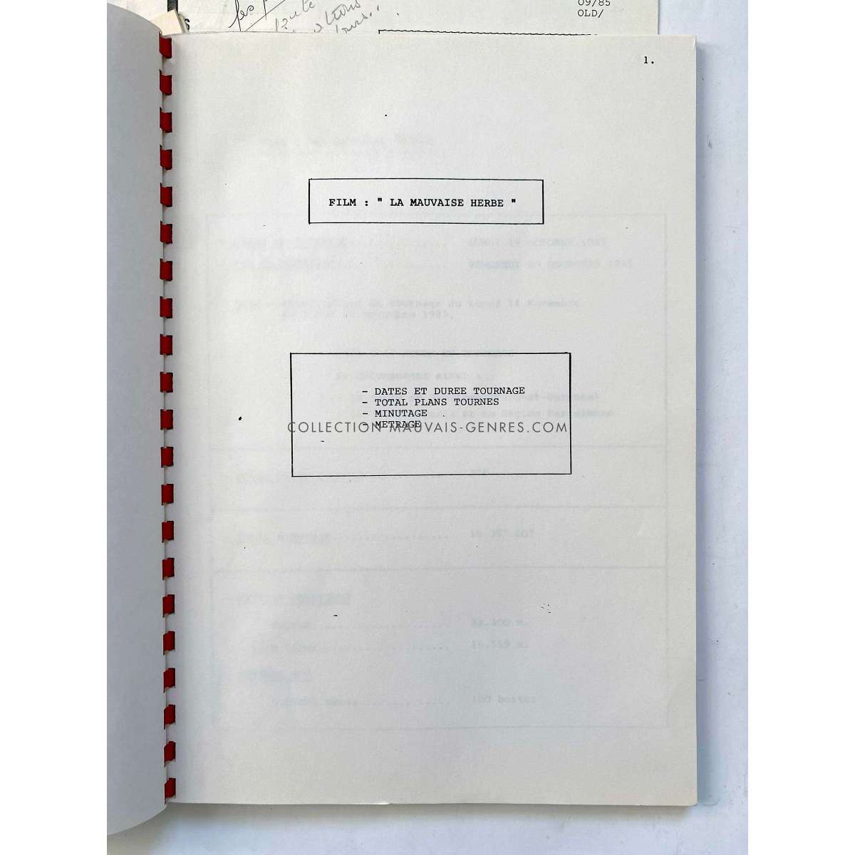 Documents de production de LE LIEU DU CRIME (SCENE OF THE CRIME - 1986 - André Téchiné, Catherine Deneuve) - Format: 21x30 cm. environ. - Très bon état (C6) Rares documents de production ayant appartenu à la responsable de production du film O. Darrigol (La Veuve Coudert…)